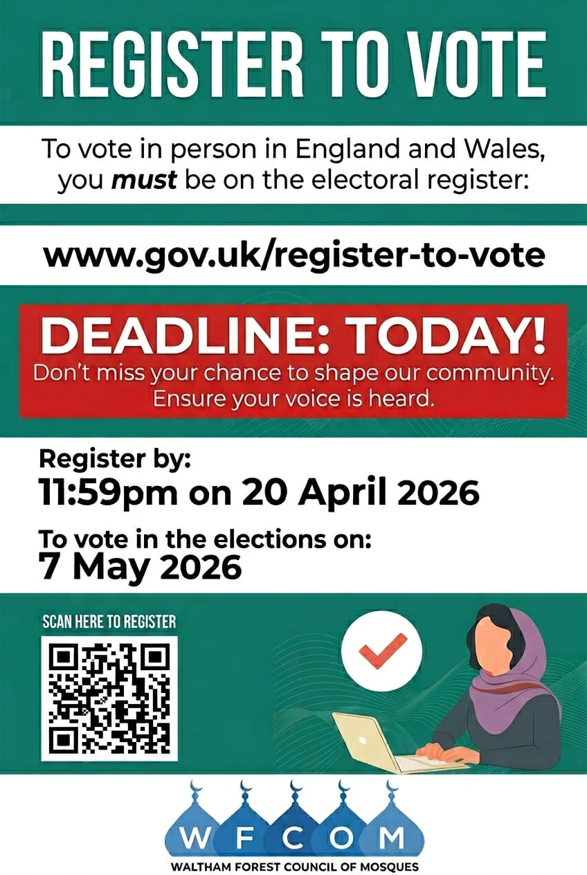 Deadline TODAY to register to local elections on 7 May. Register RIGHT NOW.